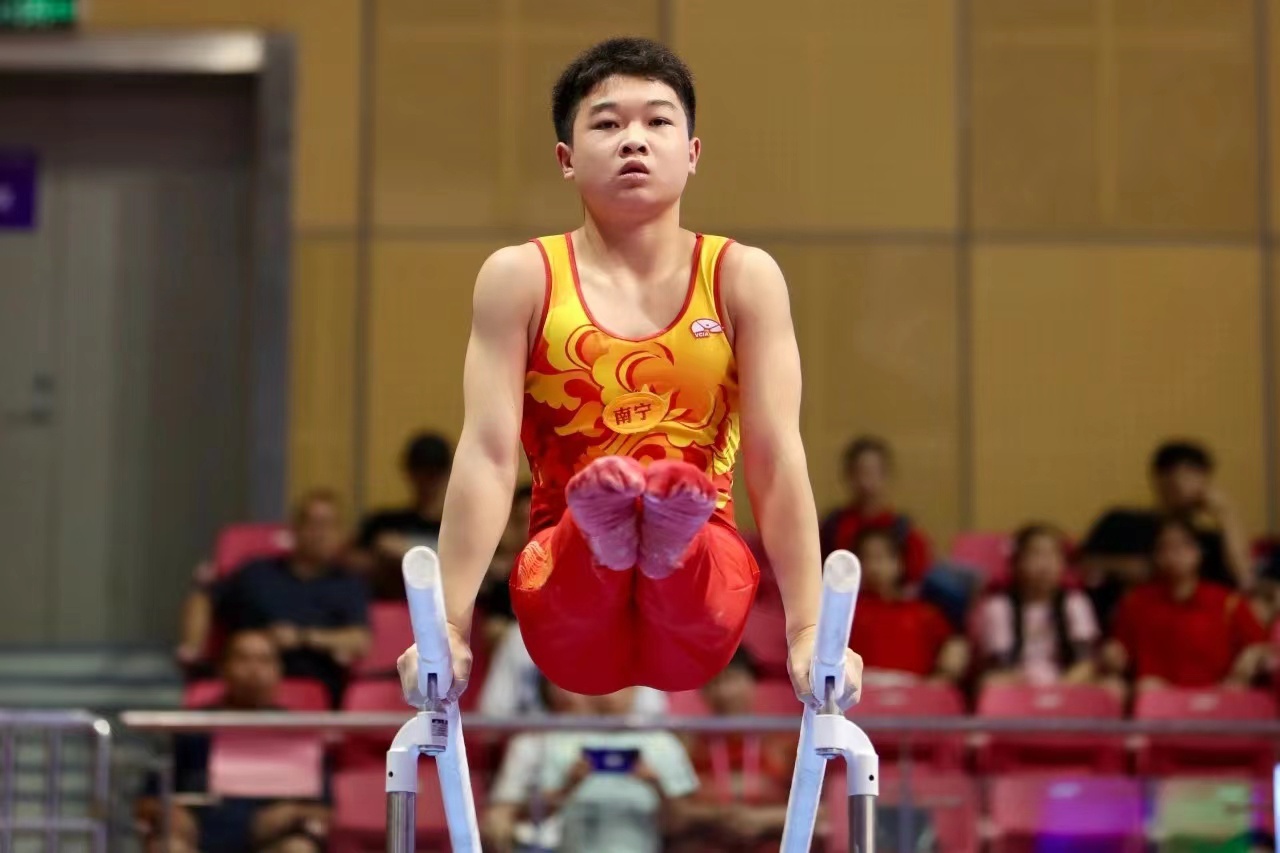 其中来自广西壮族自治区南宁市体操队的全能主力蒋书轩与来自广西南宁队的杨兰斌在赛场上发挥出色,将沉着稳定的状态一直保持到比赛最后一项,分别斩获6枚与4枚个人金牌,位列女子与男子金牌榜榜首。